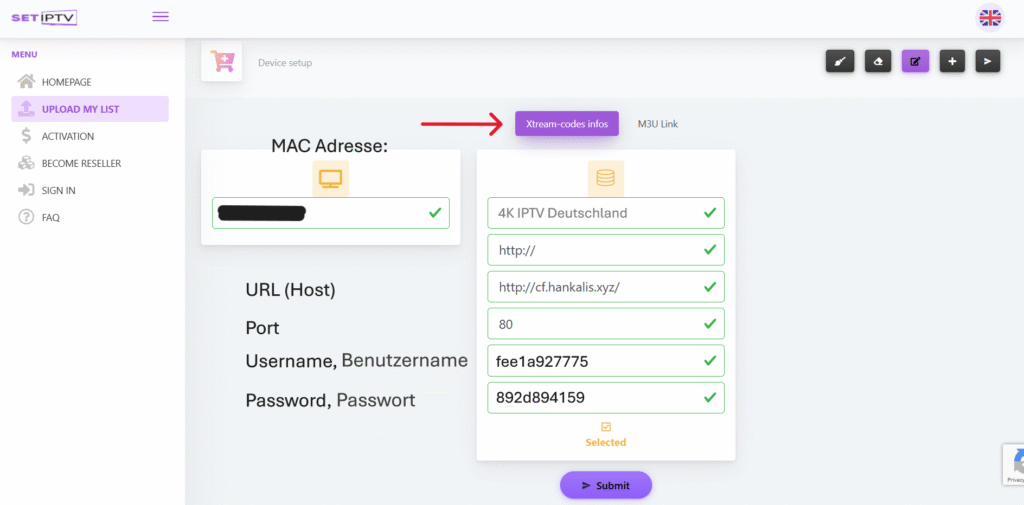 Klicke auf Senden. Starte deinen TV neu und öffne SET IPTV erneut, um tausende TV-Kanäle, Filme und Serien zu genießen.