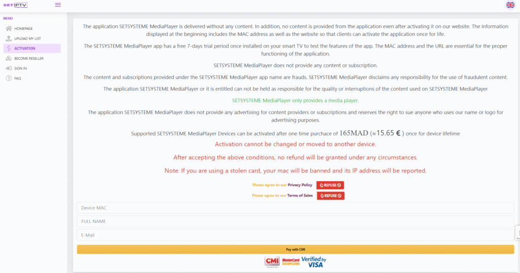 Die Aktivierung von SET IPTV erfolgt auf der Website des Entwicklers, die du über diesen direkten Link findest: https://setsysteme.com/act.app