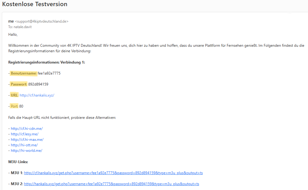 Dein IPTV-Anbieter sollte dir diese Daten zur Verfügung stellen, du kannst sie aber auch aus einem M3U-Link extrahieren.